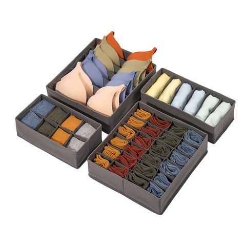 Lot de 4 compartiments de séparation de tiroirs pliables gris, organisateur de placard, sous-vêtements, organisateurs de placard, sous-lit